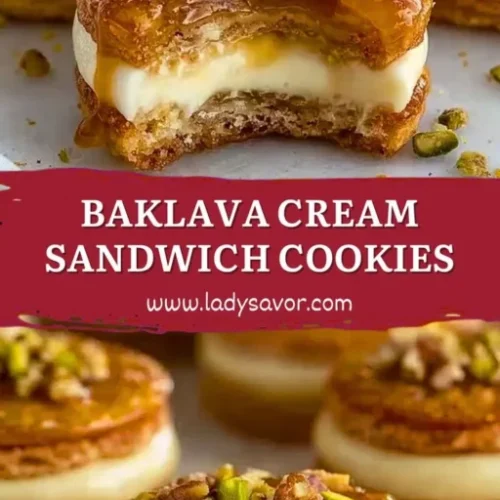 These Baklava Cream Sandwich Cookies are sure to warm your heart and home as you share them with loved ones. The layers of crispy, buttery goodness combined with creamy custard and drizzled with sweet honey will create a cozy atmosphere that’s simply irresistible. Save this Baklava Cream Sandwich Cookies recipe to your favorites board so it’s ready when you need a cozy treat! Visit often to discover more delightful recipes that celebrate the simple joys of sharing food and making memories. Happy baking, my friends!