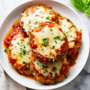 A heartwarming dish of crispy fried eggplant layered with marinara sauce and gooey cheese, perfect for weeknight dinners or special occasions.